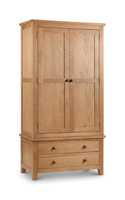 The Marlborough Combination Wardrobe has two handy storage drawers as well as ample hanging space and has a 30mm chunky top, panelled doors and a sumptuous waxed finish. Marlborough is a bedroom range with a classic and timeless design, beautifully constructed using the finest White Oak and Oak Veneers and which complements both traditional and contemporary decor beautifully.