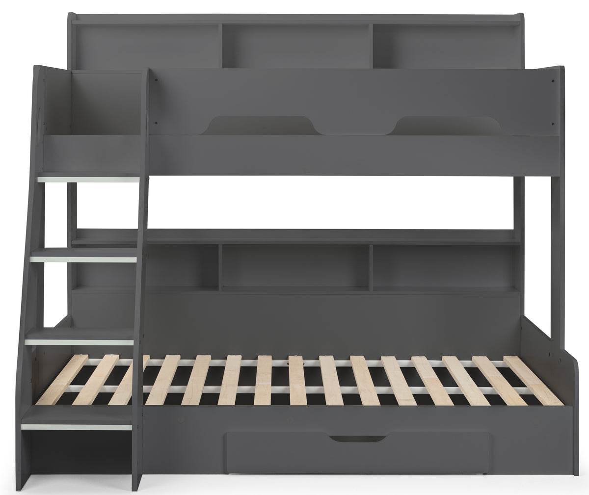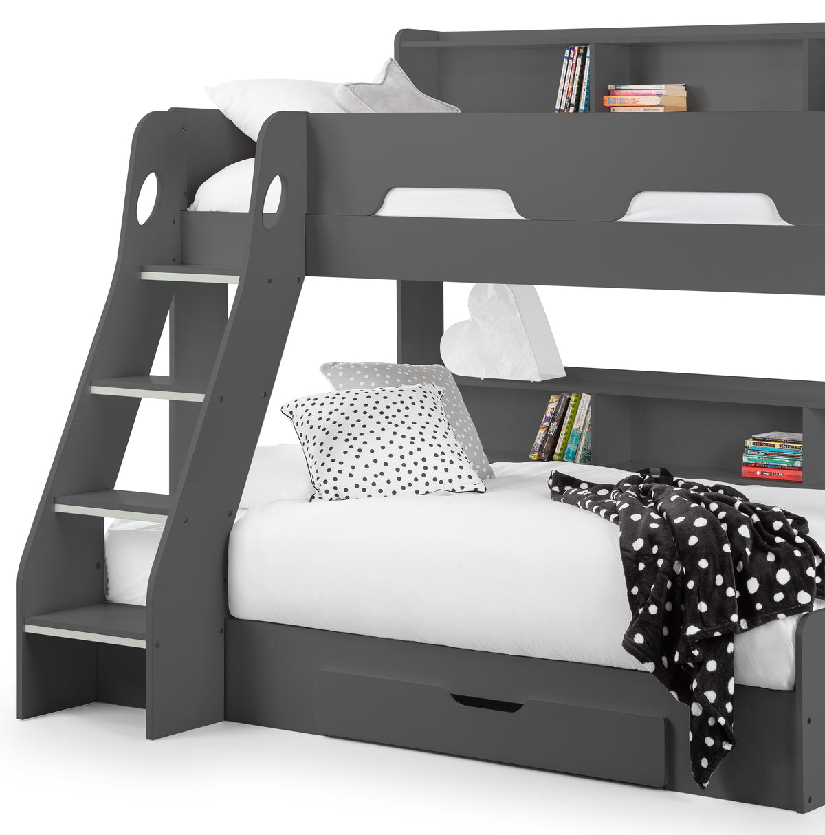 The Orion Triple Sleeper is available in a modern Anthracite or White finish. It combines style with great practicality. Single bed on top and double bed underneath. Sleeps up to 3 children, or adults if using for a guest bed. Choose mattresses from our selection to complete this set.