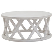 An exceptional centerpiece that channels rustic refinement through its distinctive lattice pattern, this round coffee table illuminates spaces with its airy design and thoughtfully weathered finish.