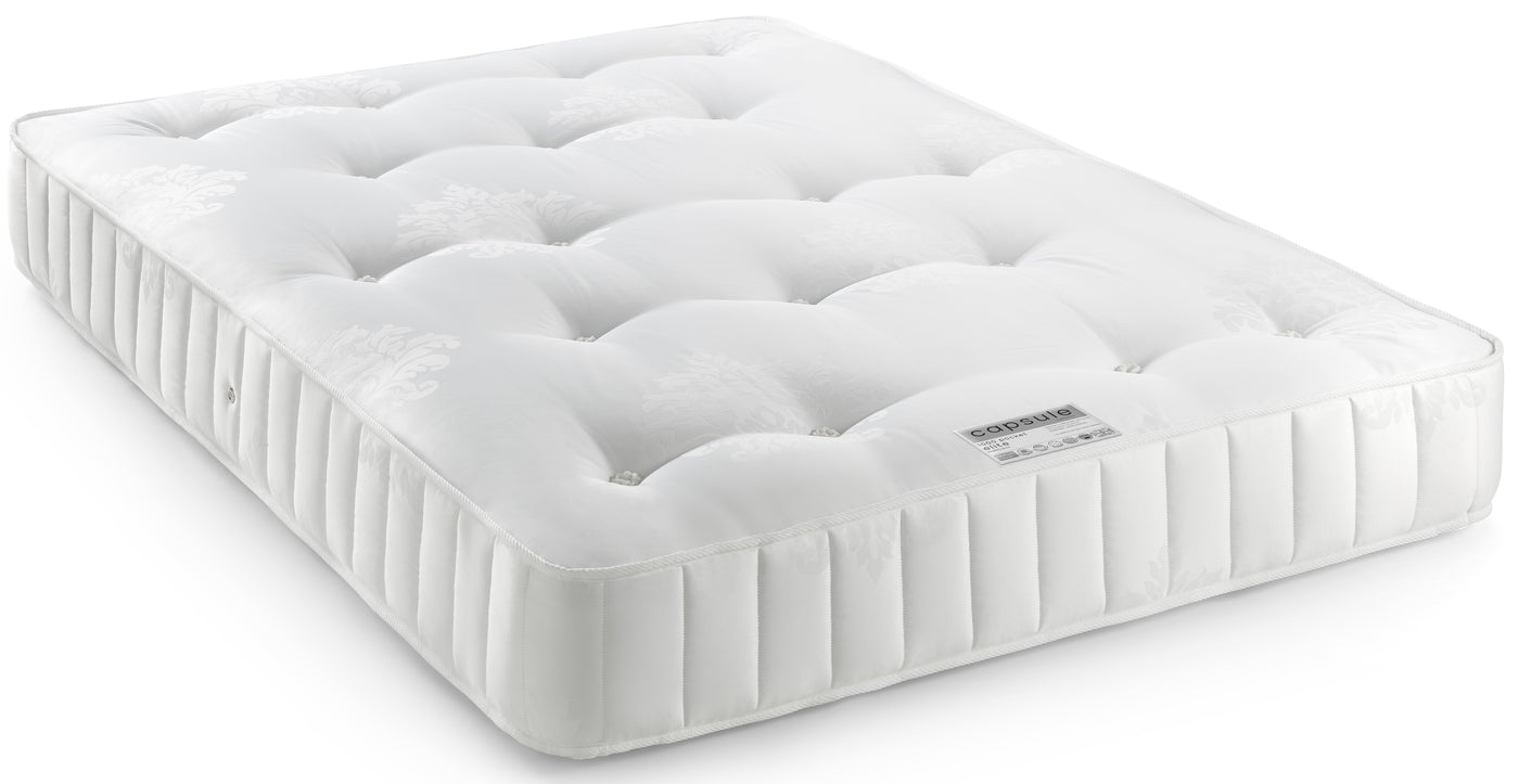 The Capsule Elite Mattress features a 1000 Pocket Spring unit, 900G Saturn Pad Insulator and 800gsm Polyester Pad filling, providing maximum comfort. Finished in a Luxury Traditional Damask Fabric, Hand Tufted with Felt Washers, and featuring Air Vents to increase air flow and breathability of your mattress, ensuring long lasting durability. Also available in 90cm and 135cm, this mattress is part of the Capsule Mattress Collection.